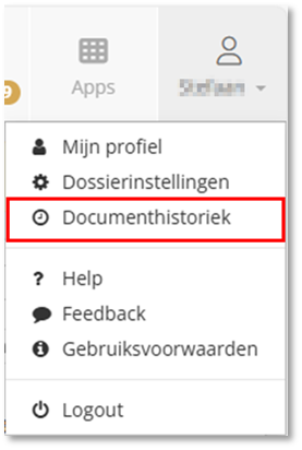 Het is mogelijk om documenten die eerder werden verwijderd, terug op te zoeken en klaar te zetten voor (een nieuwe) verwerking. Hiervoor klik je op het profiel-icoontje, rechts bovenaan het scherm en selecteer je "Documenthistoriek".