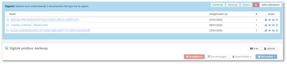 Zo wordt het geselecteerde document opnieuw klaargezet voor verwerking. Het zal bovenaan de digitale postbussen verschijnen. Van daaruit kan het document aan een specifieke postbus worden toegewezen door het te selecteren en het type document aan te geven.